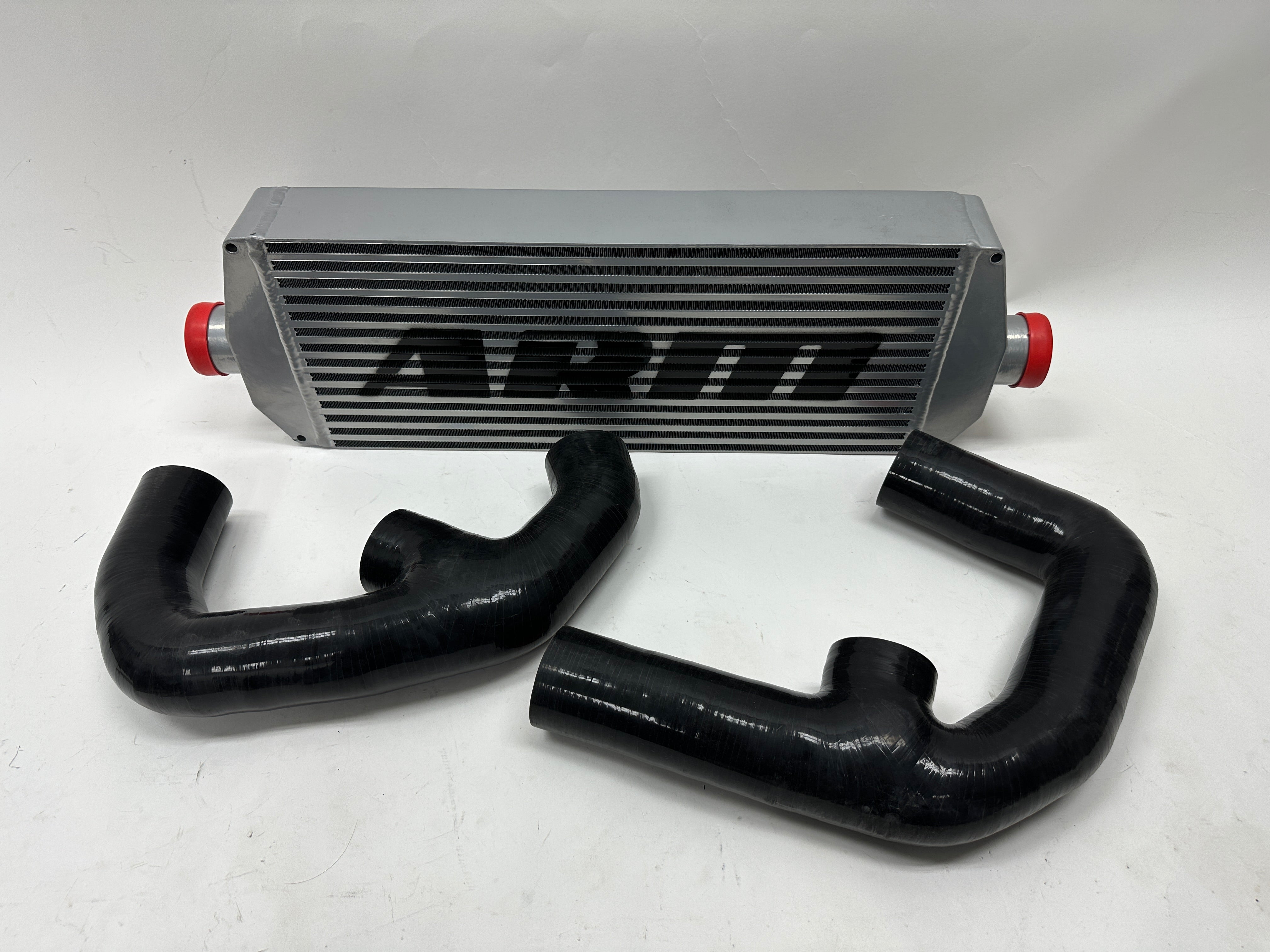 This MK7 FMIC shows signs of installation or use. Features minor cosmetic scuffs. This kit includes the Bi-Cooler piping.